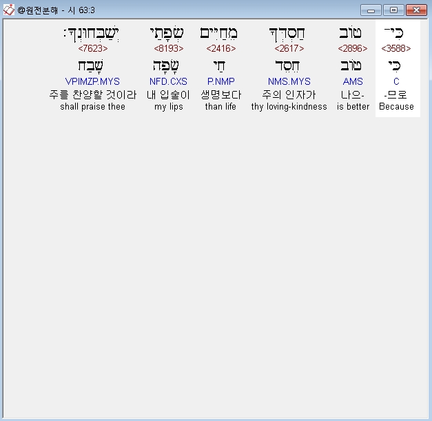 히브리어구약BHS,3 כִּי־טֹוב חַסְדְּךָ מֵחַיִּים שְׂפָתַי יְשַׁבְּחוּנְךָ׃