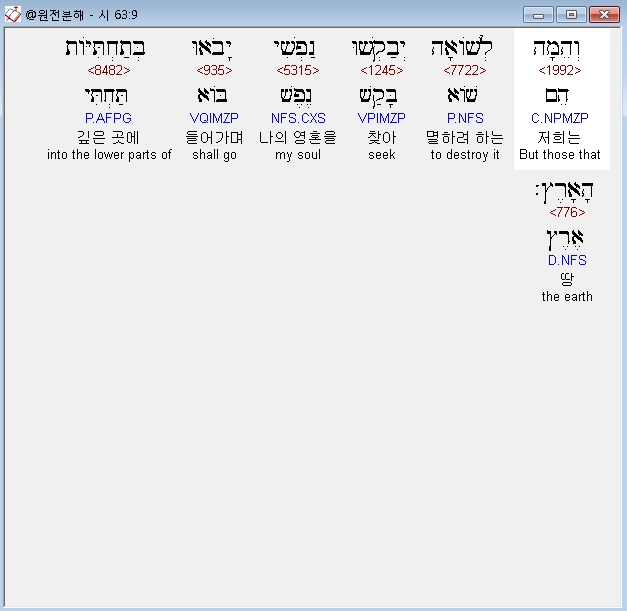 히브리어구약BHS,9 וְהֵמָּה לְשֹׁואָה יְבַקְשׁוּ נַפְשִׁי יָבֹאוּ בְּתַחְתִּיֹּות הָאָרֶץ׃