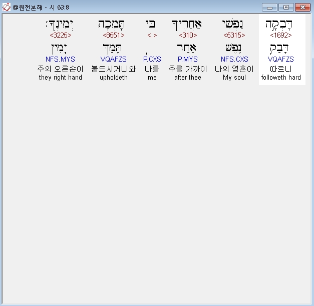 히브리어구약BHS,8 דָּבְקָה נַפְשִׁי אַחֲרֶיךָ בִּי תָּמְכָה יְמִינֶךָ׃