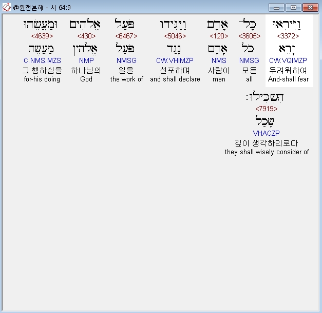 히브리어구약BHS,9 וַיִּירְאוּ כָּל־אָדָם וַיַּגִּידוּ פֹּעַל אֱלֹהִים וּמַעֲשֵׂהוּ הִשְׂכִּילוּ׃