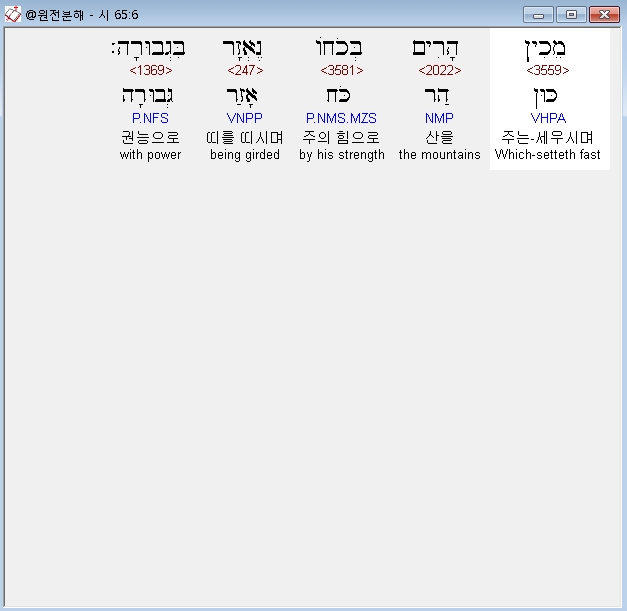 히브리어구약BHS,6 מֵכִין הָרִים בְּכֹחֹו נֶאְזָר בִּגְבוּרָה׃