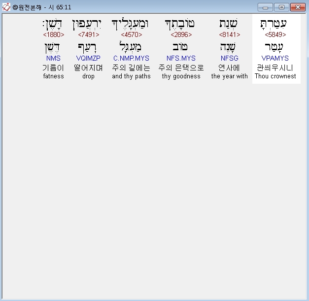 히브리어구약BHS,11 עִטַּרְתָּ שְׁנַת טֹובָתֶךָ וּמַעְגָּלֶיךָ יִרְעֲפוּן דָּשֶׁן׃