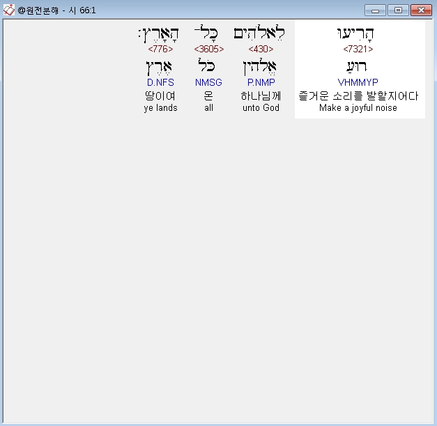 히브리어구약BHS,1 לַמְנַצֵּחַ שִׁיר מִזְמֹור הָרִיעוּ לֵאלֹהִים כָּל־הָאָרֶץ׃