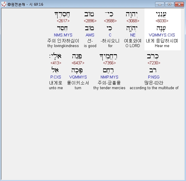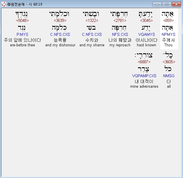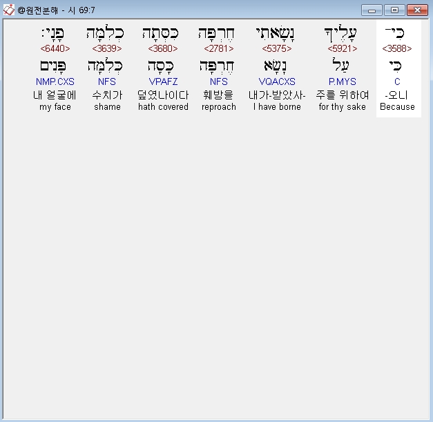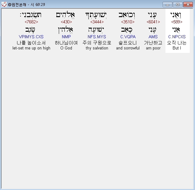 | 히브리어 시편 68편 전체 원어 원문 성경 공부 주석 강해 설교 해설 해석 (0) | 2020.10.12 |