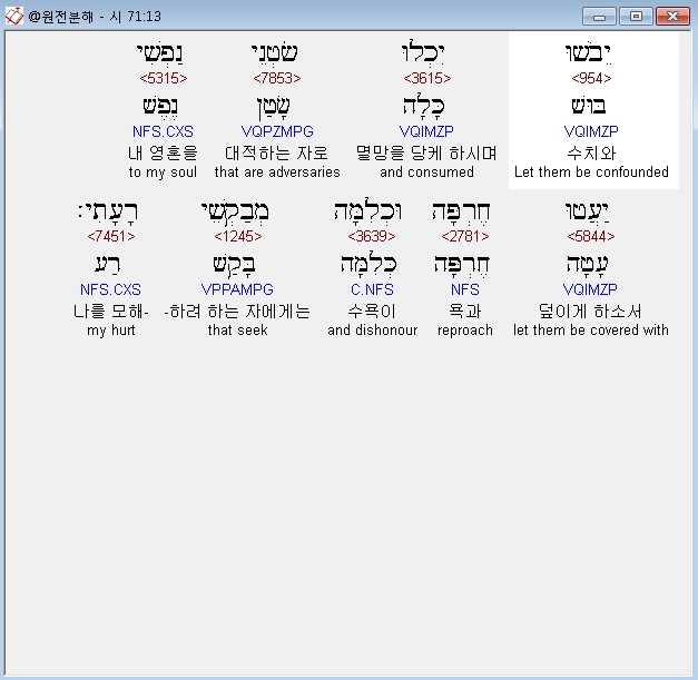 | 히브리어 시편 70편 전체 원어 원문 성경 공부 주석 강해 설교 해설 해석 (0) | 2020.10.12 |
