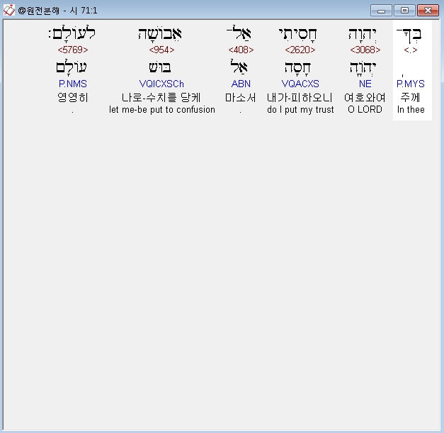 히브리어구약BHS,1 בְּךָ־יְהוָה חָסִיתִי אַל־אֵבֹושָׁה לְעֹולָם׃