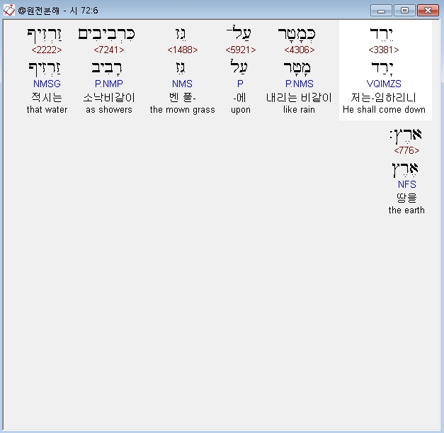 히브리어구약BHS,6 יֵרֵד כְּמָטָר עַל־גֵּז כִּרְבִיבִים זַרְזִיף אָרֶץ׃