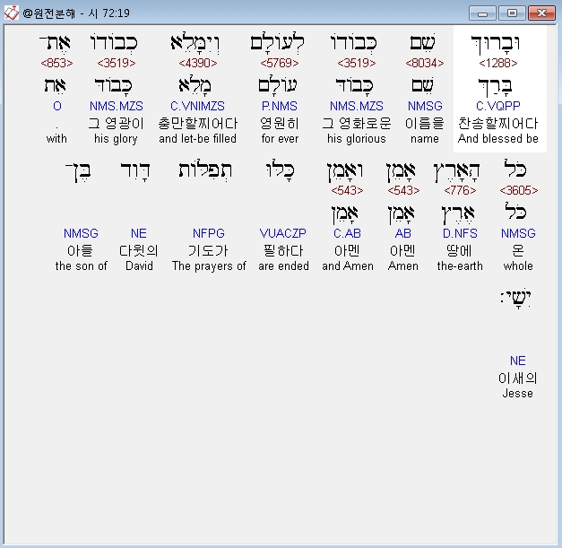 히브리어구약BHS,19 וּבָרוּךְ שֵׁם כְּבֹודֹו לְעֹולָם וְיִמָּלֵא כְבֹודֹו אֶת־כֹּל הָאָרֶץ אָמֵן וְאָמֵן׃
