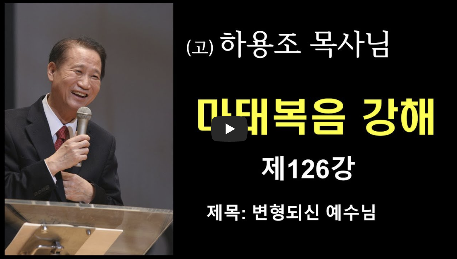 | [마태복음 강해 시리즈] 127강 변화산과 예수님 | 하용조 목사님 | 온누리교회 | 설교문 녹취록 요약 정리 (0) | 2025.02.10 |