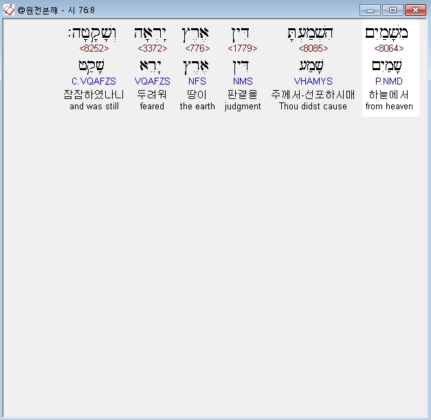 히브리어구약BHS,8 מִשָּׁמַיִם הִשְׁמַעְתָּ דִּין אֶרֶץ יָרְאָה וְשָׁקָטָה׃