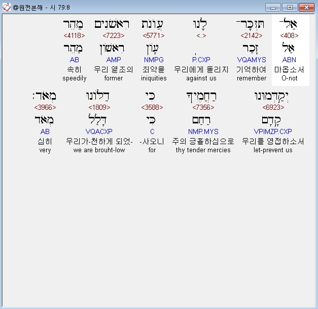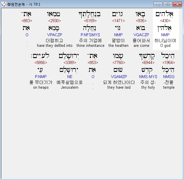 | 히브리어 시편 78편 전체 원어 원문 성경 공부 주석 강해 설교 해설 해석 (0) | 2020.10.13 |