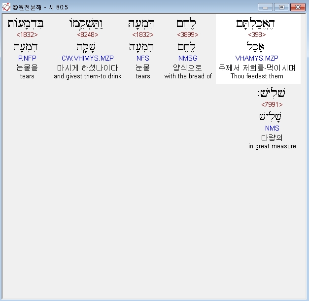 히브리어구약BHS,5 הֶאֱכַלְתָּם לֶחֶם דִּמְעָה וַתַּשְׁקֵמֹו בִּדְמָעֹות שָׁלִישׁ׃