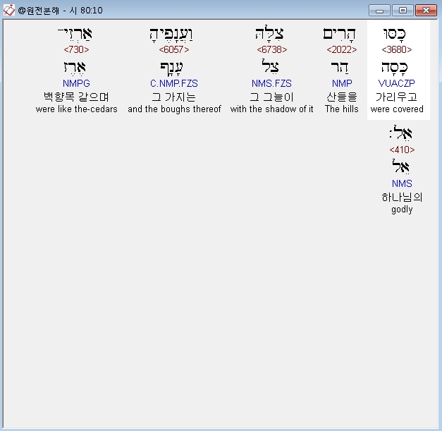 | 히브리어 시편 81편 전체 원어 원문 성경 공부 주석 강해 설교 해설 해석 (0) | 2020.10.13 |