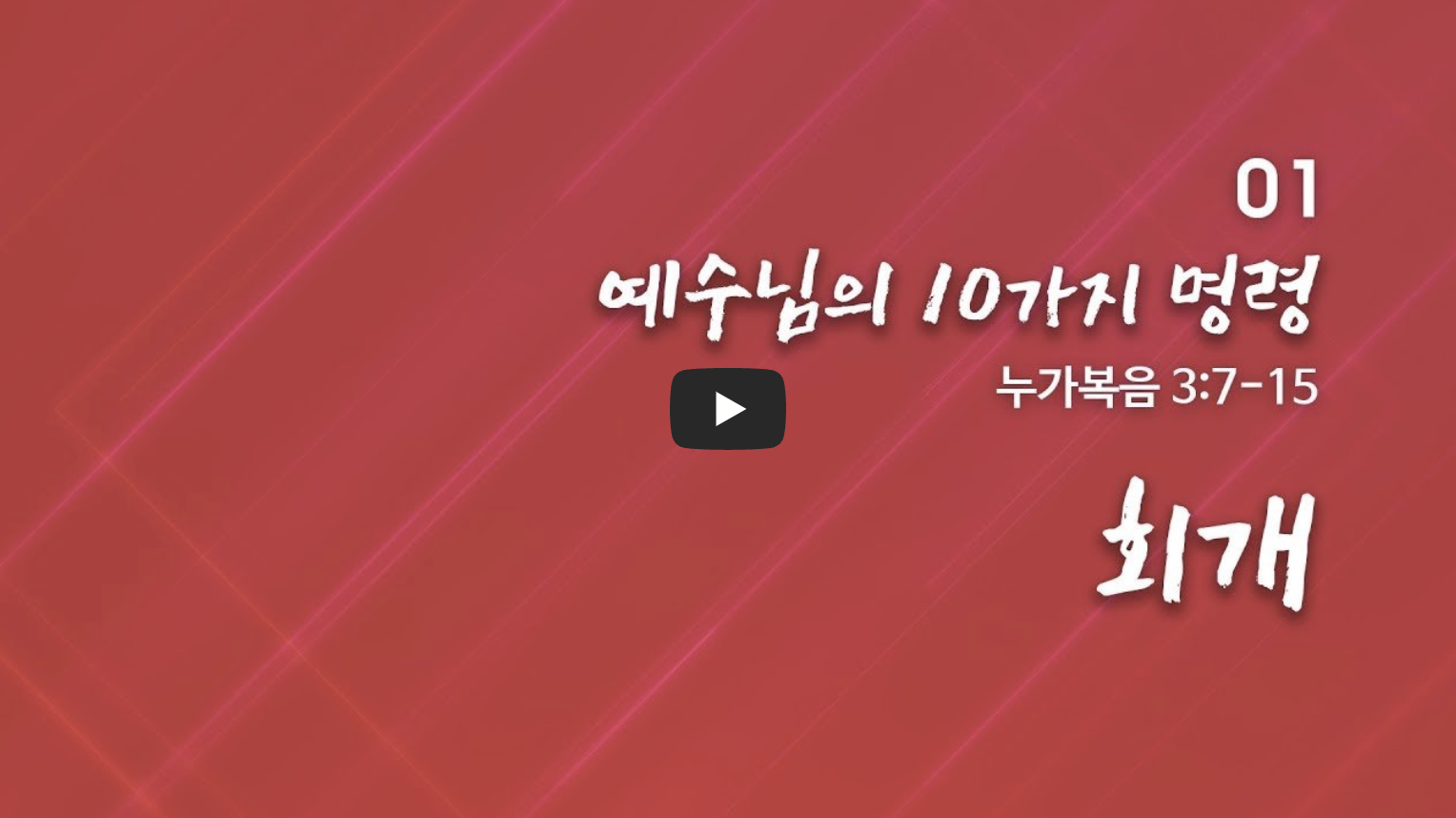 우리는 지난주부터 서론 겸 예수님의 10가지 명령에 대해 본격적으로 다루기 시작했습니다. 오늘부터는 '회개'라는 주제로 시작합니다. 이 주제는 총 10주에 걸쳐 다룰 중요한 내용입니다. 첫 번째 주제는 '회개'이고, 두 번째는 '세례', 세 번째는 '말씀 안에 거하기', 네 번째는 '기도', 다섯 번째는 '성령 충만', 여섯 번째는 '성찬', 일곱 번째는 '사랑', 여덟 번째는 '헌금', 아홉 번째는 '전도와 제자화', 마지막 열 번째는 '핍박 속에서 기뻐하기'입니다. 이 10가지 주제는 예수님의 명령에 담긴 핵심 가치를 반영하고 있으며, 선교 현장에서 반드시 실천해야 할 내용들입니다.