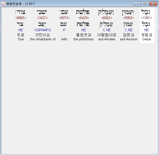 영어NASB,7 Gebal, and Ammon, and Amalek; Philistia with the inhabitants of Tyre;