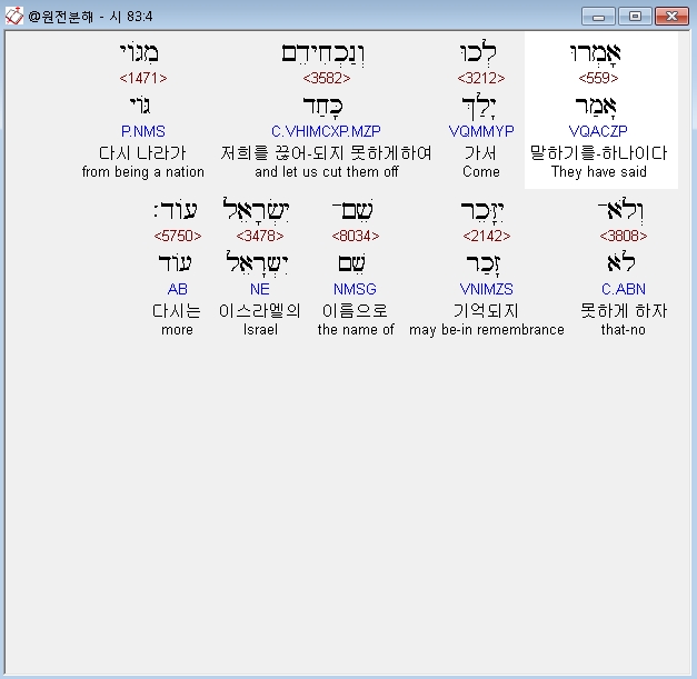 | 히브리어 시편 85편 전체 원어 원문 성경 공부 주석 강해 설교 해설 해석 (0) | 2020.10.13 |