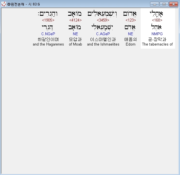 히브리어구약BHS,6 אָהֳלֵי אֱדֹום וְיִשְׁמְעֵאלִים מֹואָב וְהַגְרִים׃