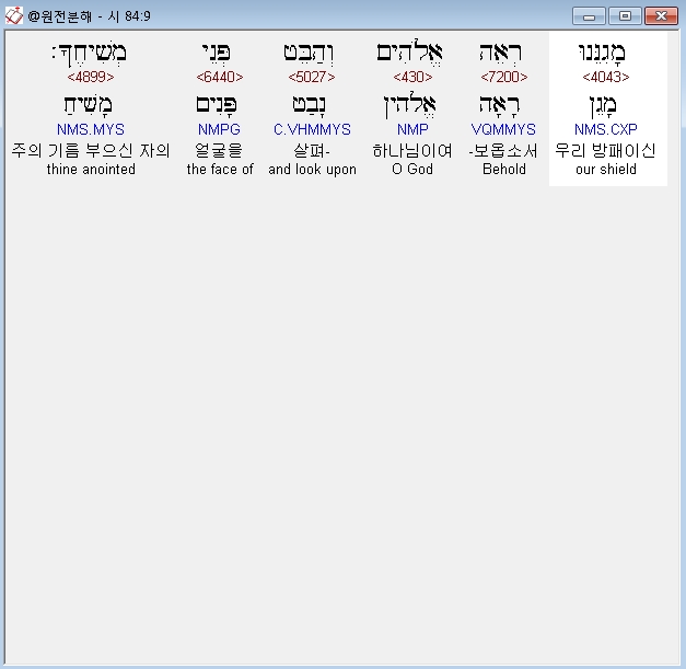 히브리어구약BHS,9 מָגִנֵּנוּ רְאֵה אֱלֹהִים וְהַבֵּט פְּנֵי מְשִׁיחֶךָ׃