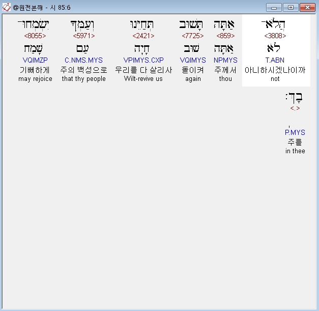 히브리어구약BHS,6 הֲלֹא־אַתָּה תָּשׁוּב תְּחַיֵּנוּ וְעַמְּךָ יִשְׂמְחוּ־בָךְ׃