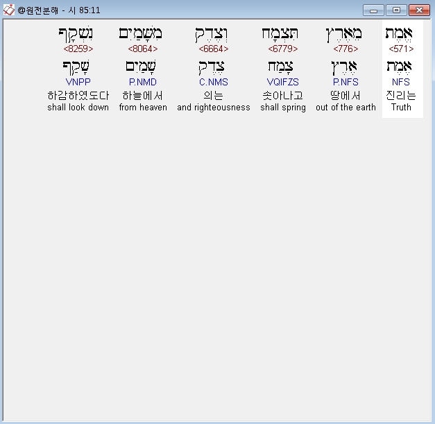 히브리어구약BHS,11 אֱמֶת מֵאֶרֶץ תִּצְמָח וְצֶדֶק מִשָּׁמַיִם נִשְׁקָף׃
