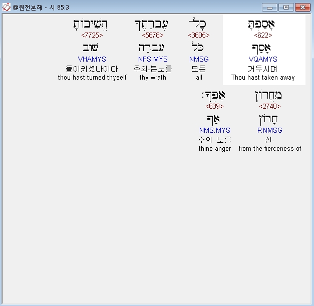히브리어구약BHS,3 אָסַפְתָּ כָל־עֶבְרָתֶךָ הֱשִׁיבֹותָ מֵחֲרֹון אַפֶּךָ׃