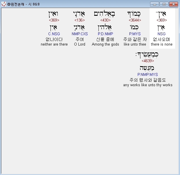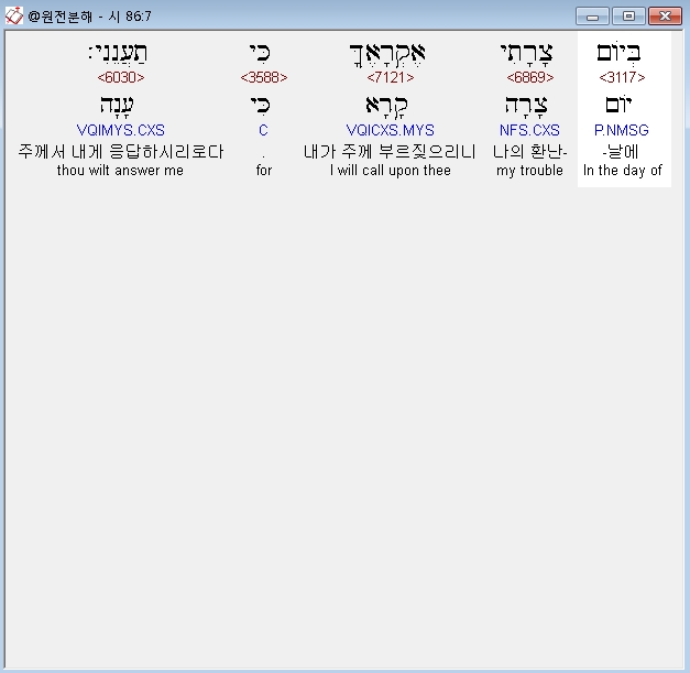 | 히브리어 시편 85편 전체 원어 원문 성경 공부 주석 강해 설교 해설 해석 (0) | 2020.10.13 |
