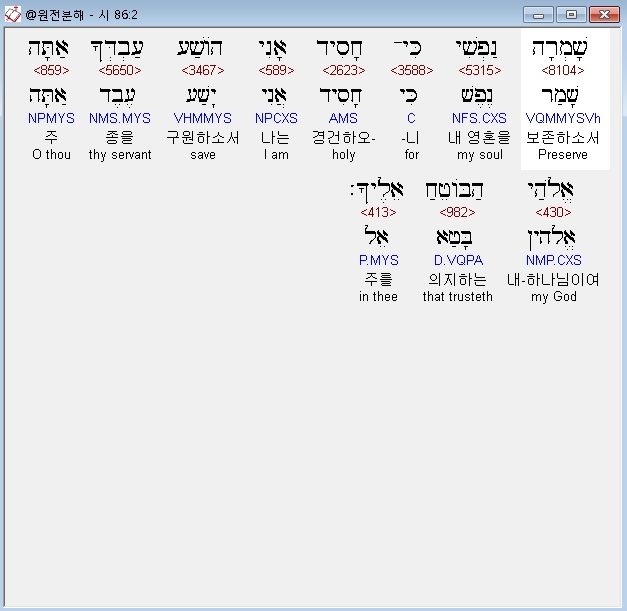 히브리어구약BHS,2 שָׁמְרָה נַפְשִׁי כִּי־חָסִיד אָנִי הֹושַׁע עַבְדְּךָ אַתָּה אֱלֹהַי הַבֹּוטֵחַ אֵלֶיךָ׃
