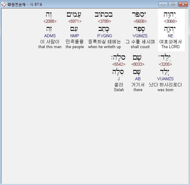 히브리어구약BHS,6 יְהוָה יִסְפֹּר בִּכְתֹוב עַמִּים זֶה יֻלַּד־שָׁם סֶלָה׃