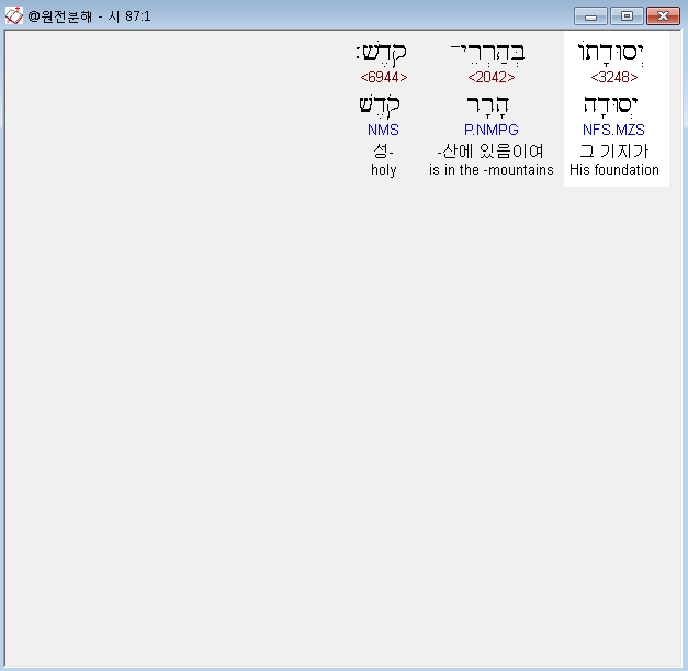 히브리어구약BHS,1 לִבְנֵי־קֹרַח מִזְמֹור שִׁיר יְסוּדָתֹו בְּהַרְרֵי־קֹדֶשׁ׃