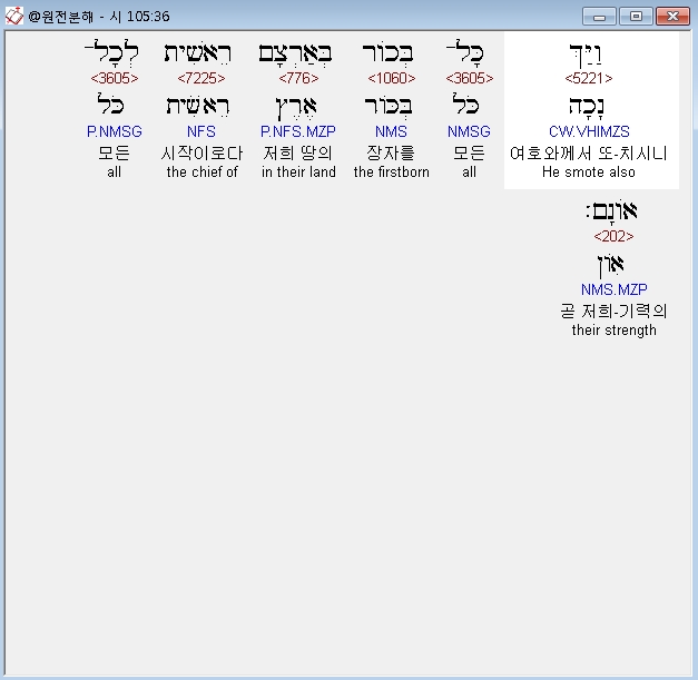 | 히브리어 시편 106편 전체 원어 원문 성경 공부 주석 강해 설교 해설 해석 (0) | 2020.10.14 |