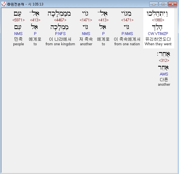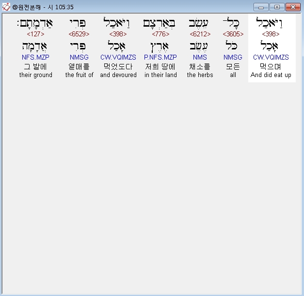 | 히브리어 시편 107편 전체 원어 원문 성경 공부 주석 강해 설교 해설 해석 (0) | 2020.10.14 |
