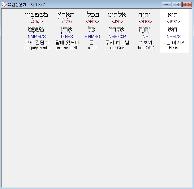 히브리어구약BHS,7 הוּא יְהוָה אֱלֹהֵינוּ בְּכָל־הָאָרֶץ מִשְׁפָּטָיו׃