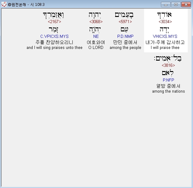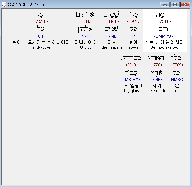 | 히브리어 시편 107편 전체 원어 원문 성경 공부 주석 강해 설교 해설 해석 (0) | 2020.10.14 |