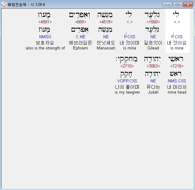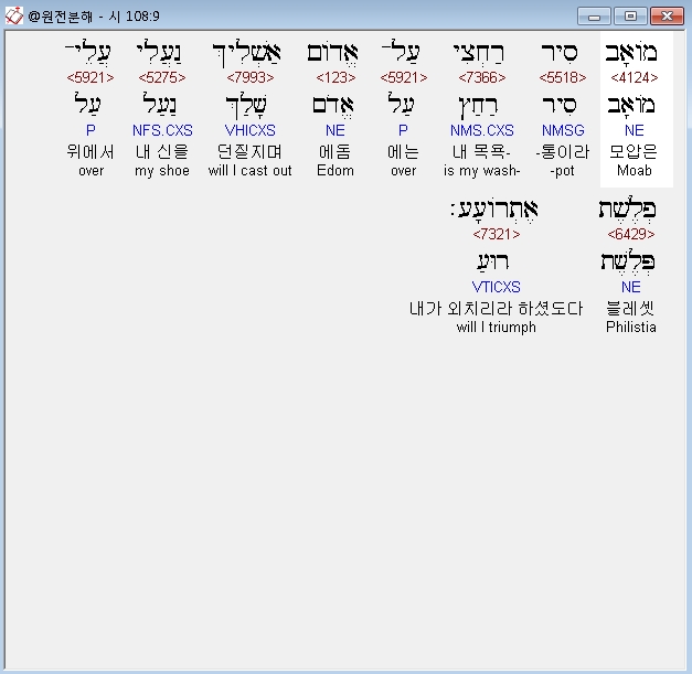 | 히브리어 시편 109편 전체 원어 원문 성경 공부 주석 강해 설교 해설 해석 (0) | 2020.10.14 |
