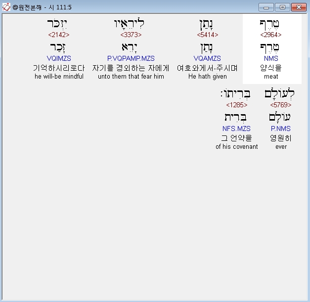히브리어구약BHS,5 טֶרֶף נָתַן לִירֵאָיו יִזְכֹּר לְעֹולָם בְּרִיתֹו׃