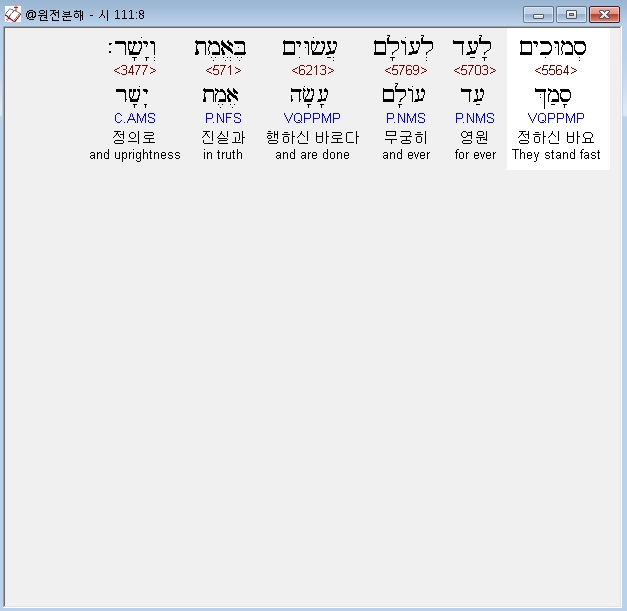 히브리어구약BHS,8 סְמוּכִים לָעַד לְעֹולָם עֲשׂוּיִם בֶּאֱמֶת וְיָשָׁר׃