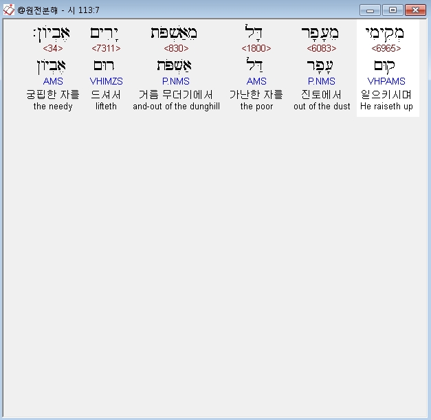 히브리어구약BHS,7 מְקִימִי מֵעָפָר דָּל מֵאַשְׁפֹּת יָרִים אֶבְיֹון׃