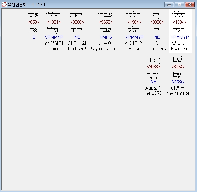 히브리어구약BHS,1 הַלְלוּ יָהּ הַלְלוּ עַבְדֵי יְהוָה הַלְלוּ אֶת־שֵׁם יְהוָה׃
