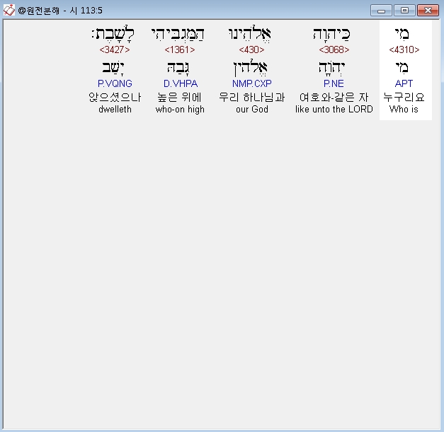히브리어구약BHS,5 מִי כַּיהוָה אֱלֹהֵינוּ הַמַּגְבִּיהִי לָשָׁבֶת׃