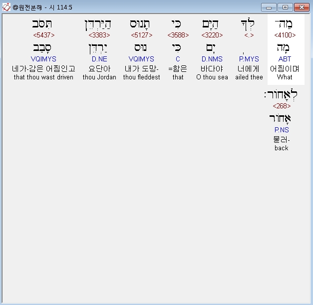 히브리어구약BHS,5 מַה־לְּךָ הַיָּם כִּי תָנוּס הַיַּרְדֵּן תִּסֹּב לְאָחֹור׃