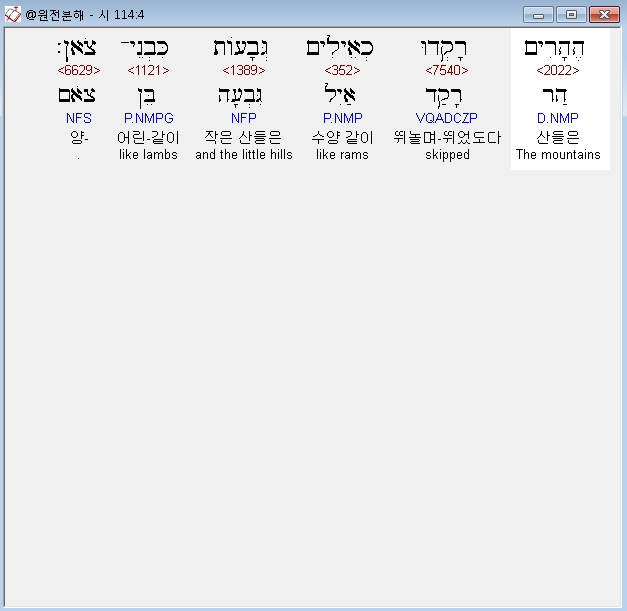 히브리어구약BHS,4 הֶהָרִים רָקְדוּ כְאֵילִים גְּבָעֹות כִּבְנֵי־צֹאן׃