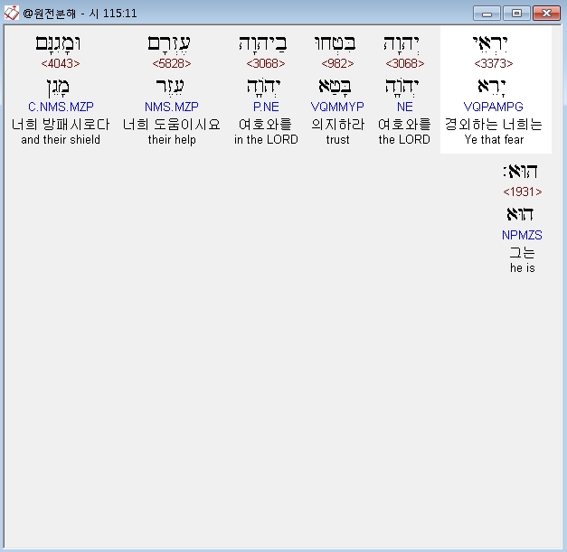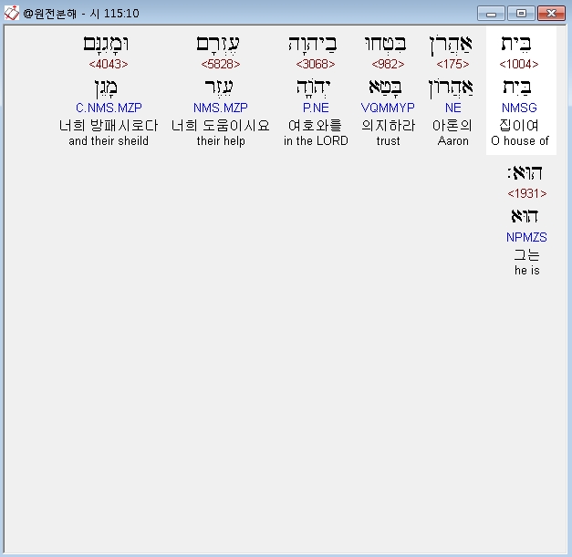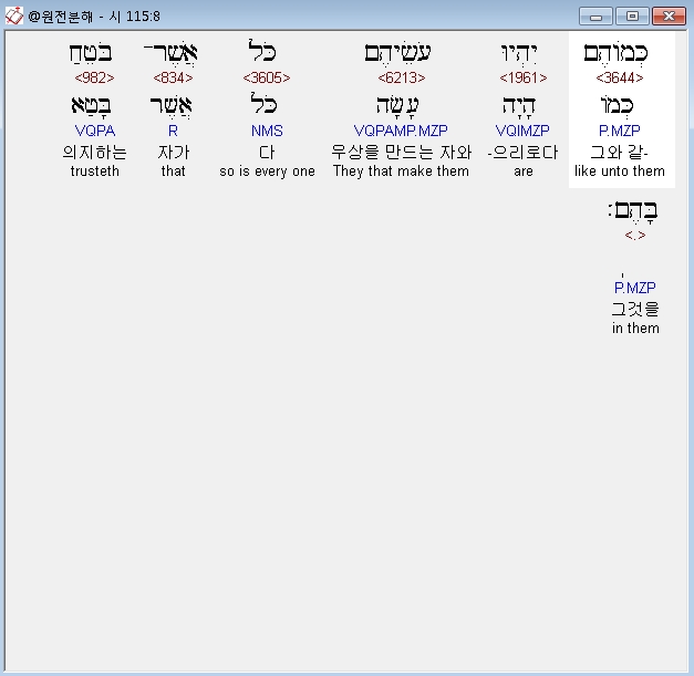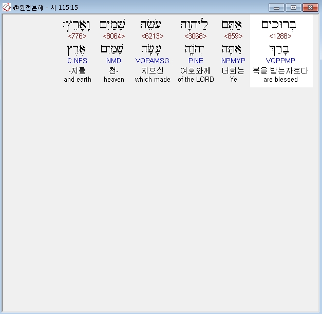 | 히브리어 시편 114편 전체 원어 원문 성경 공부 주석 강해 설교 해설 해석 (0) | 2020.10.14 |