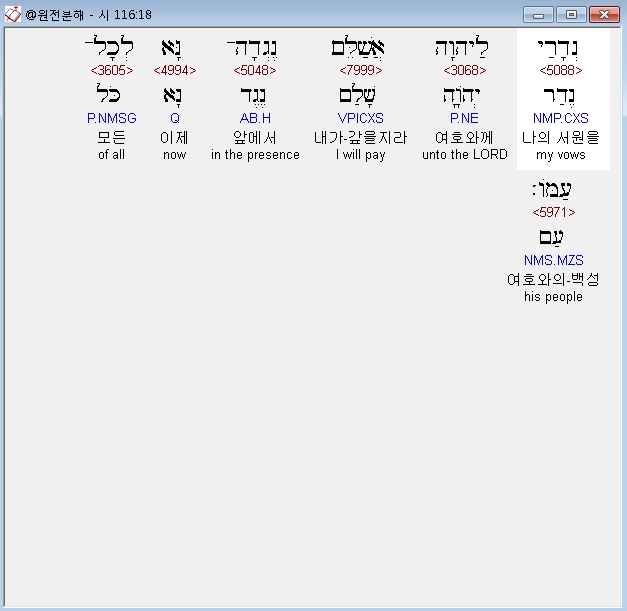 히브리어구약BHS,18 נְדָרַי לַיהוָה אֲשַׁלֵּם נֶגְדָה־נָּא לְכָל־עַמֹּו׃