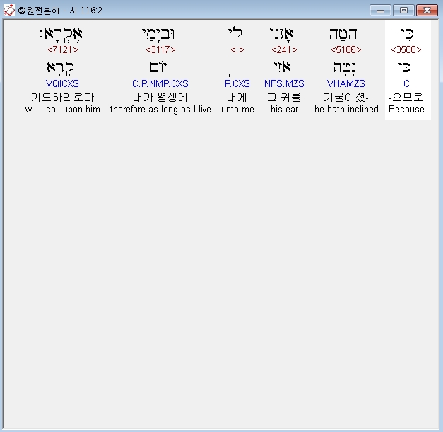 히브리어구약BHS,2 כִּי־הִטָּה אָזְנֹו לִי וּבְיָמַי אֶקְרָא׃