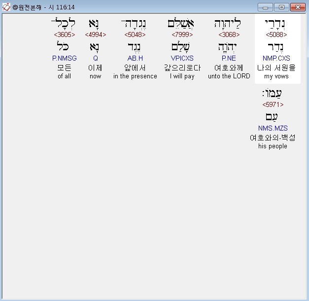히브리어구약BHS,14 נְדָרַי לַיהוָה אֲשַׁלֵּם נֶגְדָה־נָּא לְכָל־עַמֹּו׃