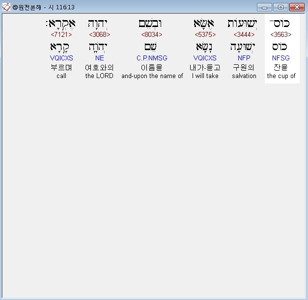 히브리어구약BHS,13 כֹּוס־יְשׁוּעֹות אֶשָּׂא וּבְשֵׁם יְהוָה אֶקְרָא׃