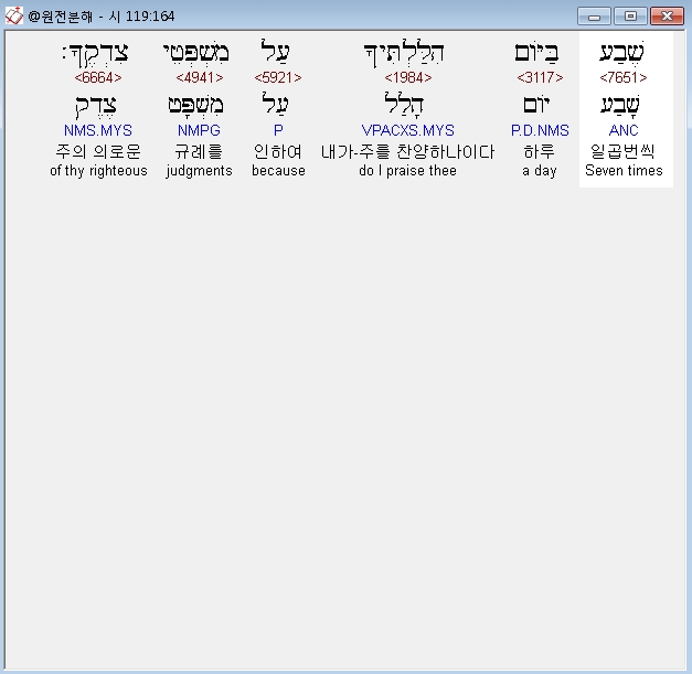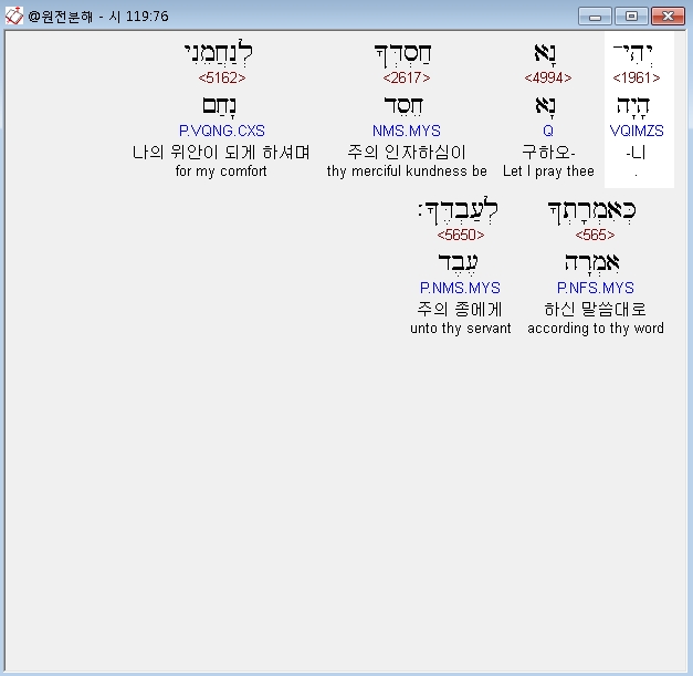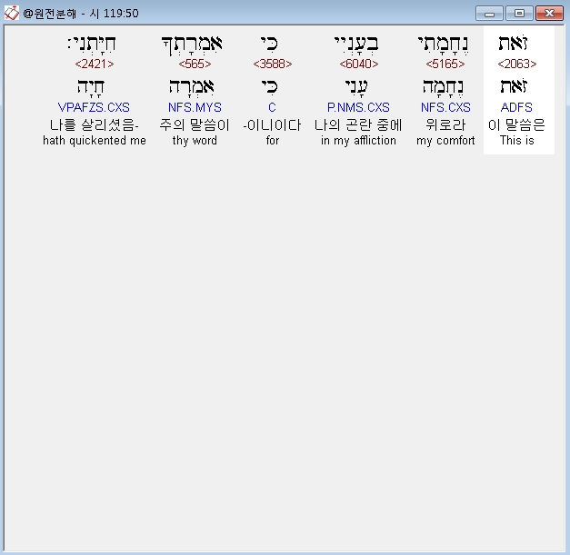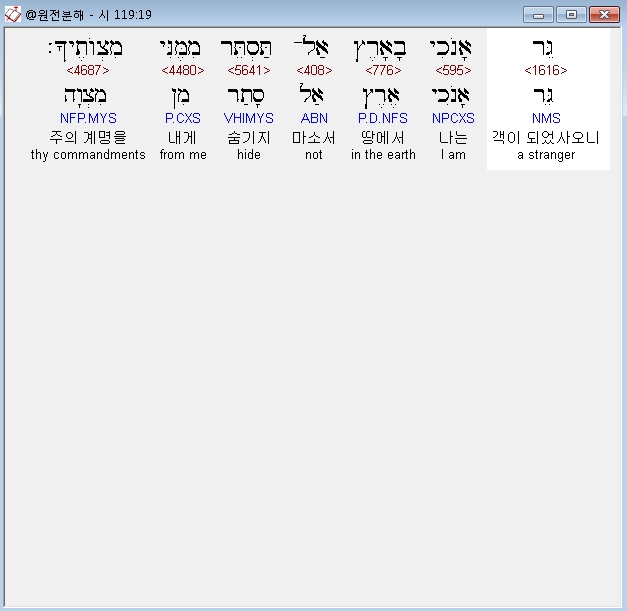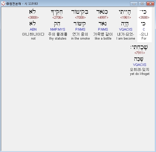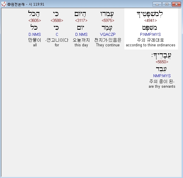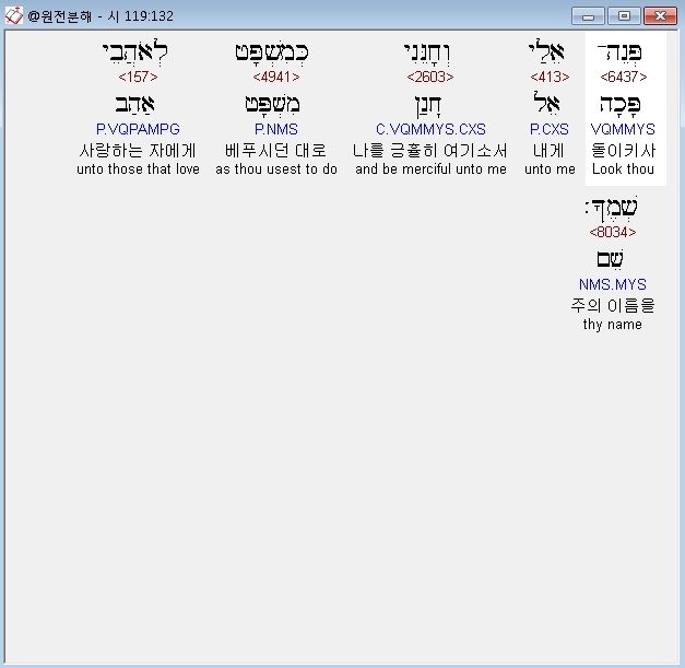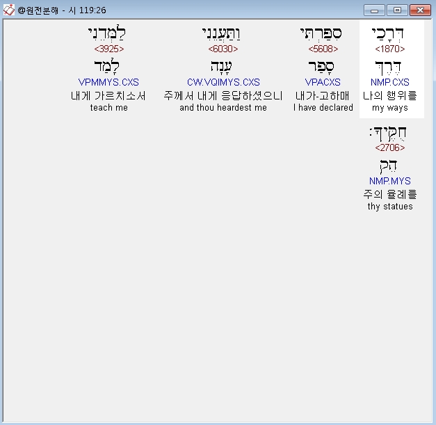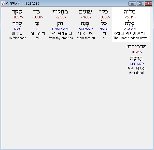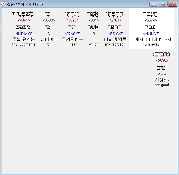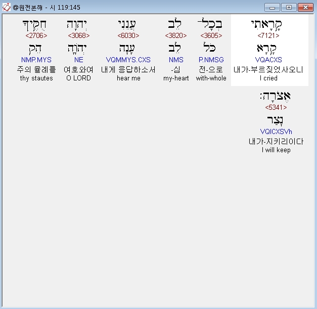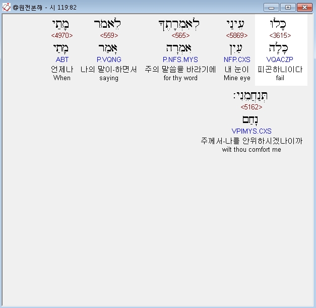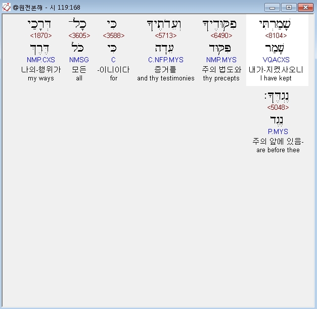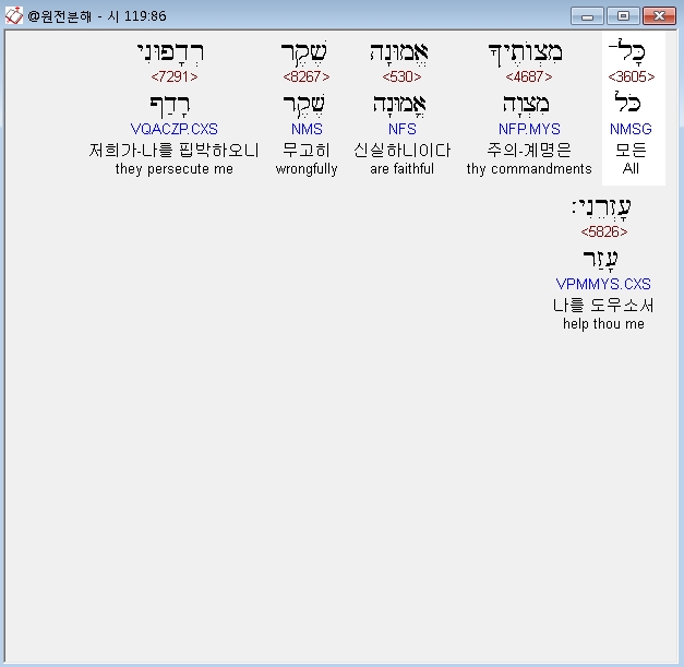 | 히브리어 시편 118편 전체 원어 원문 성경 공부 주석 강해 설교 해설 해석 (0) | 2020.10.14 |