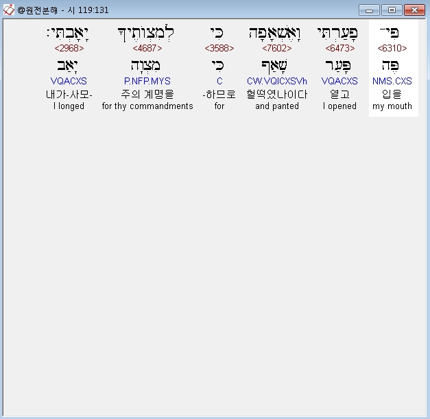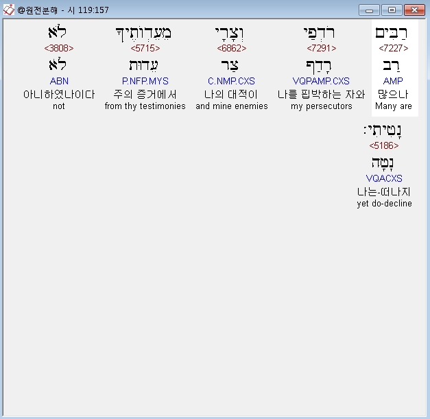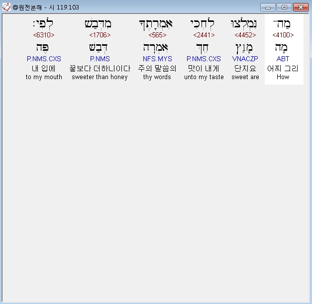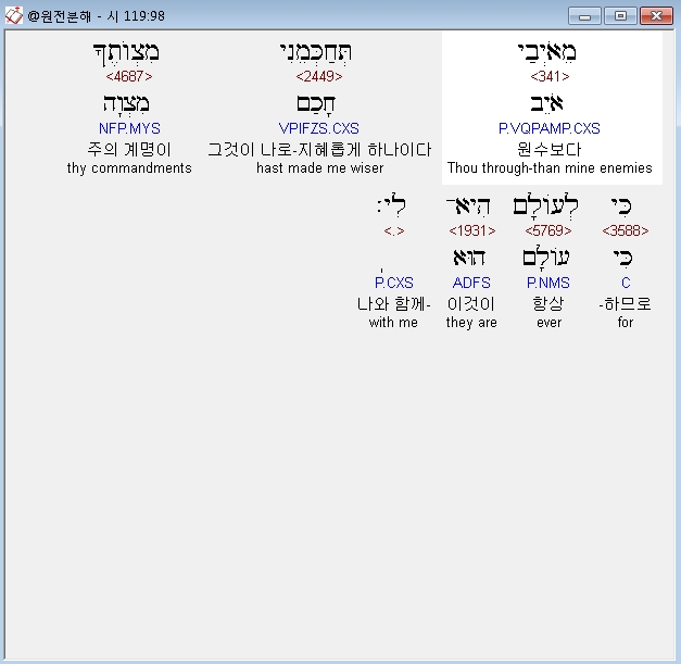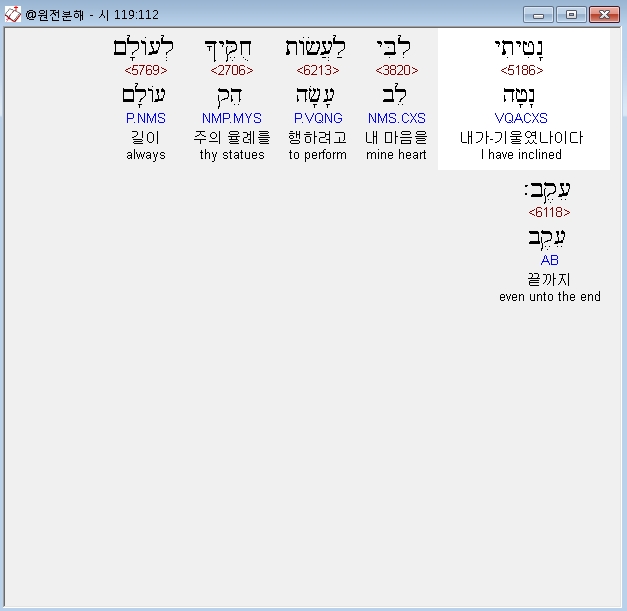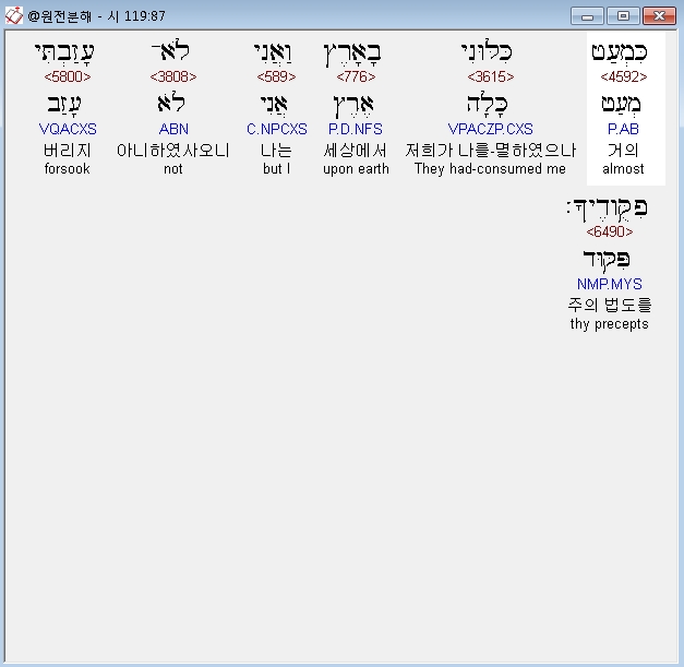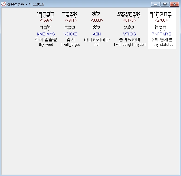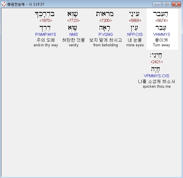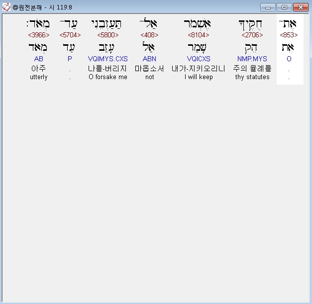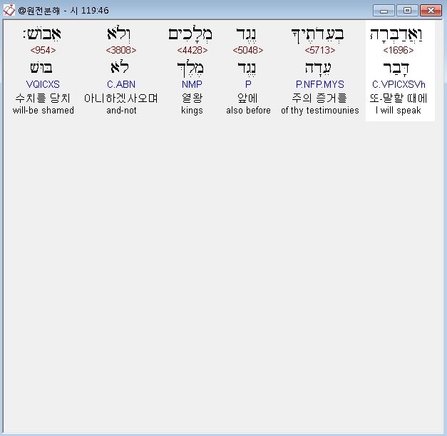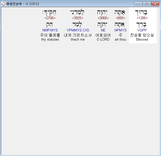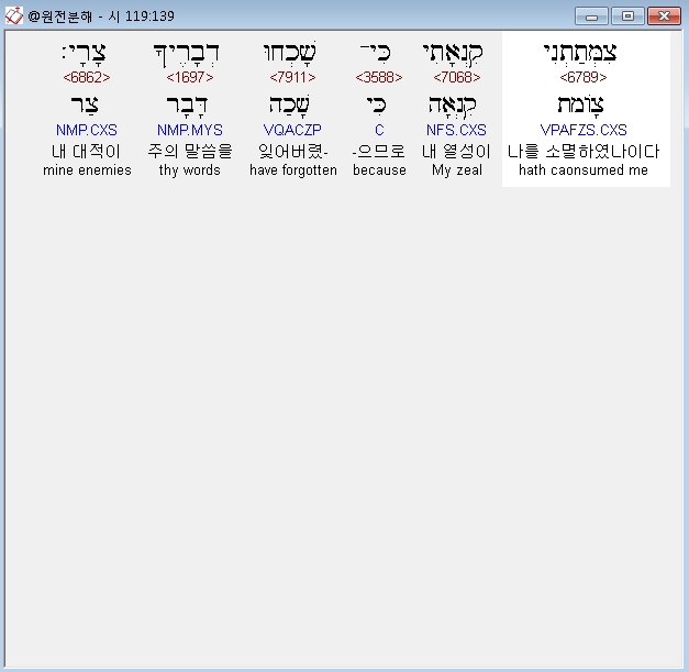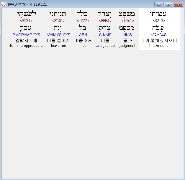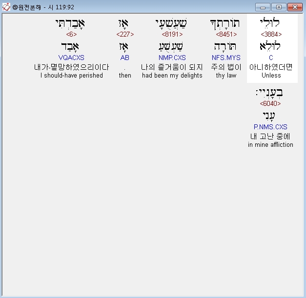 | 히브리어 시편 118편 전체 원어 원문 성경 공부 주석 강해 설교 해설 해석 (0) | 2020.10.14 |