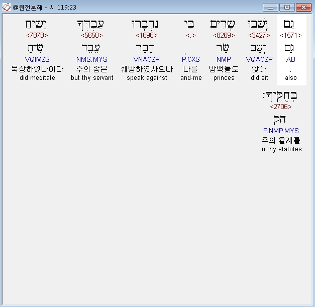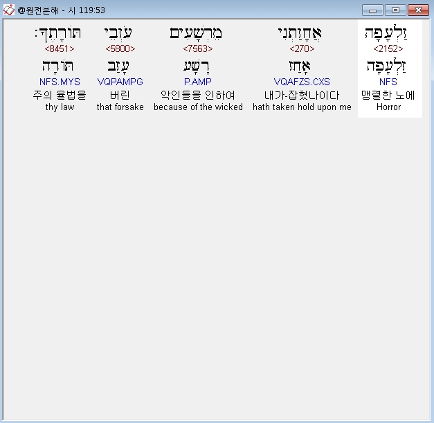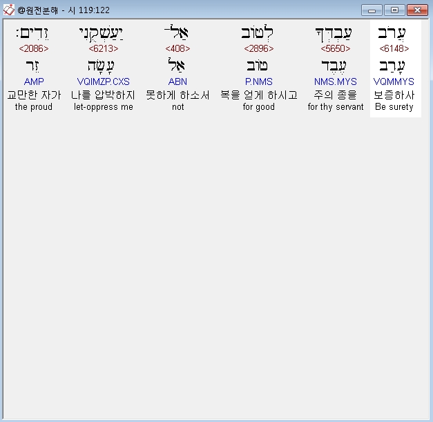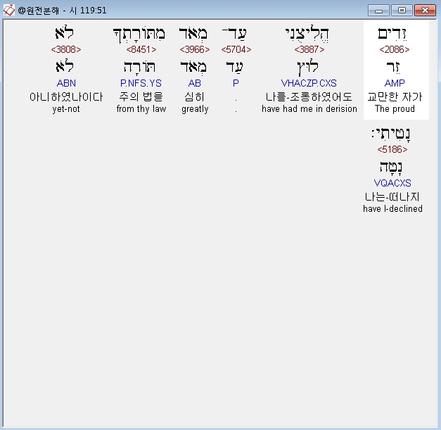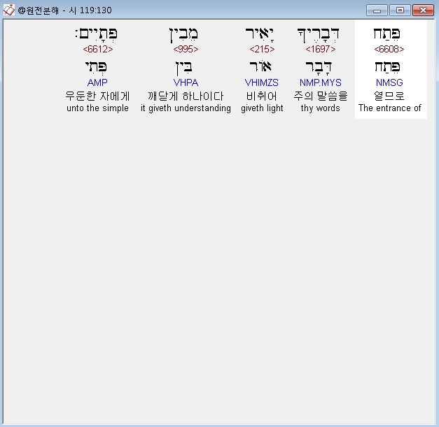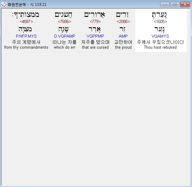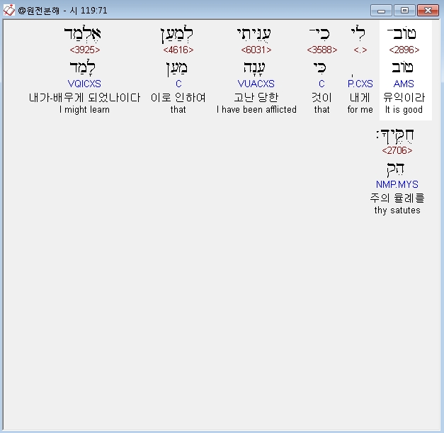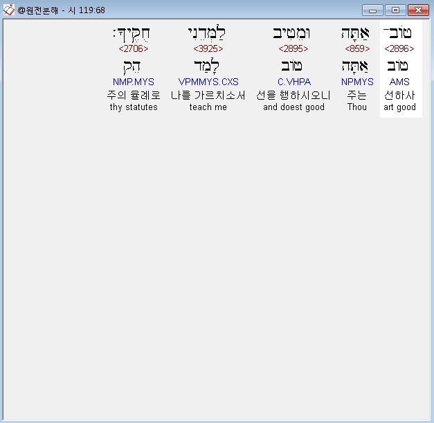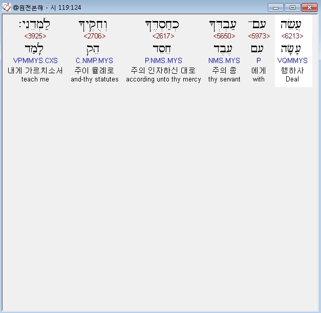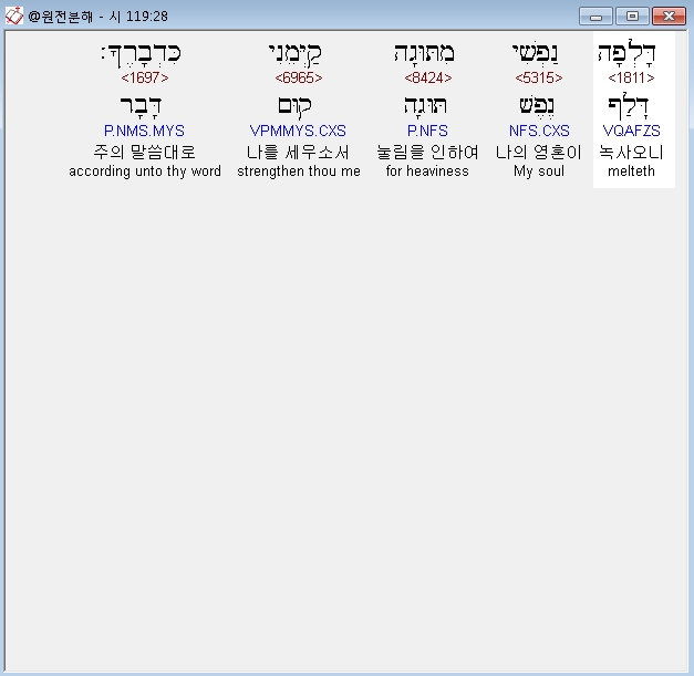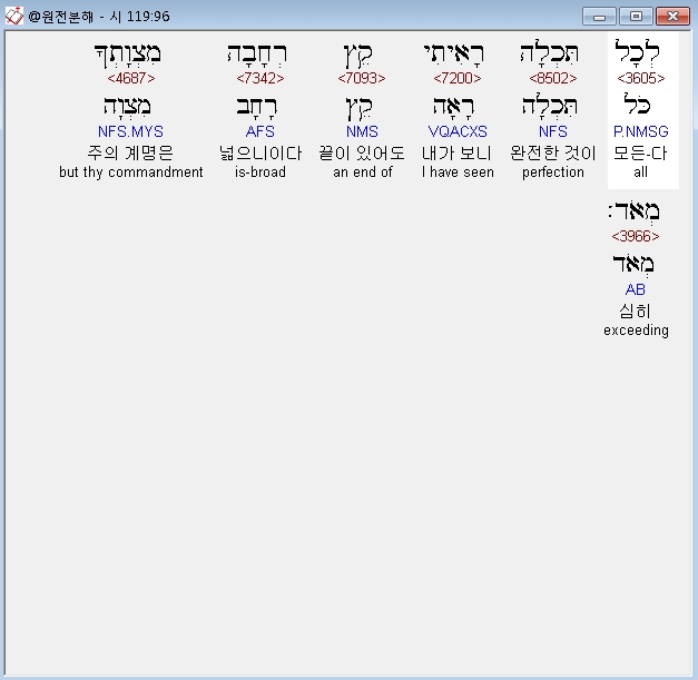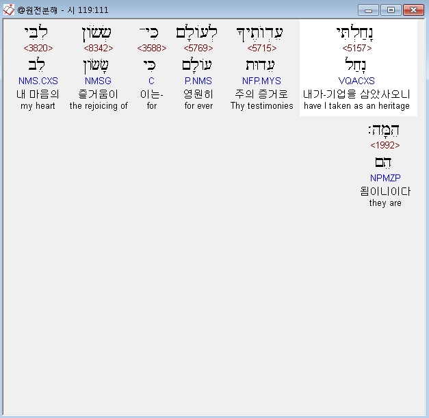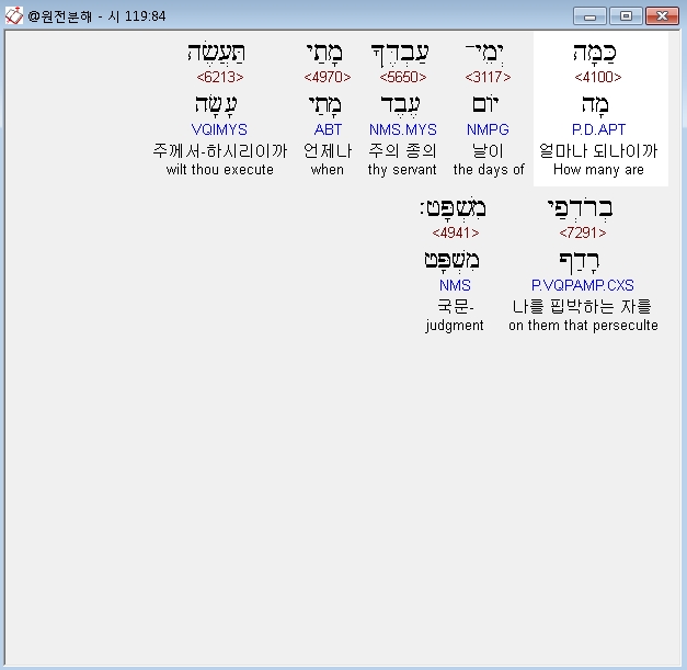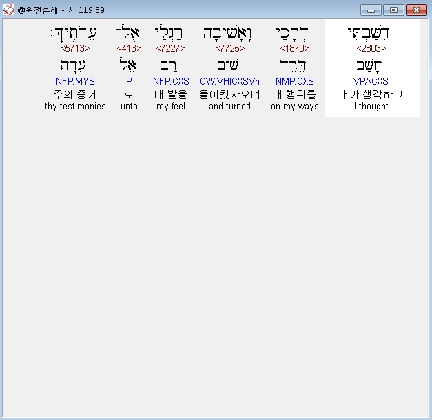 | 히브리어 시편 118편 전체 원어 원문 성경 공부 주석 강해 설교 해설 해석 (0) | 2020.10.14 |