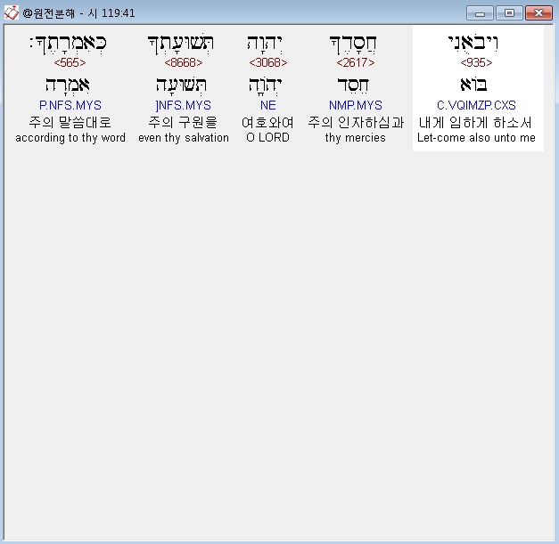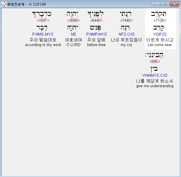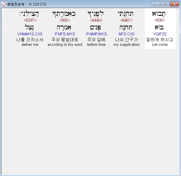 히브리어구약BHS,170 תָּבֹוא תְּחִנָּתִי לְפָנֶיךָ כְּאִמְרָתְךָ הַצִּילֵנִי׃